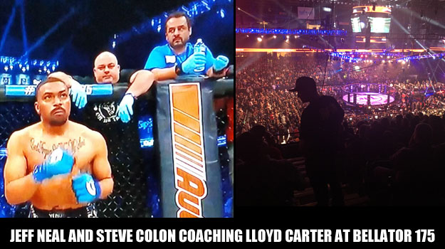 Aurora / Naperville, Morris, and Merrillville Coach Jeff Neal and Steve Colon coaching Lloyd Carter at Bellator at the Allstate Arena. We train MMA, Boxing, Muay Thai Kickboxing, Boxing, Wrestling, Read More ...